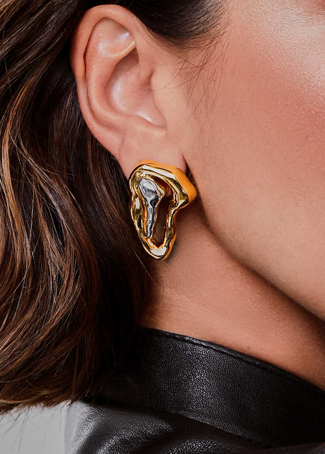 O Brinco Antítese Bicolor G oferece um visual impactante com sua estrutura desmontável e prática. Composto por duas partes uma em banho dourado e outra em prata, este brinco celebra a dualidade com elegância e estilo.